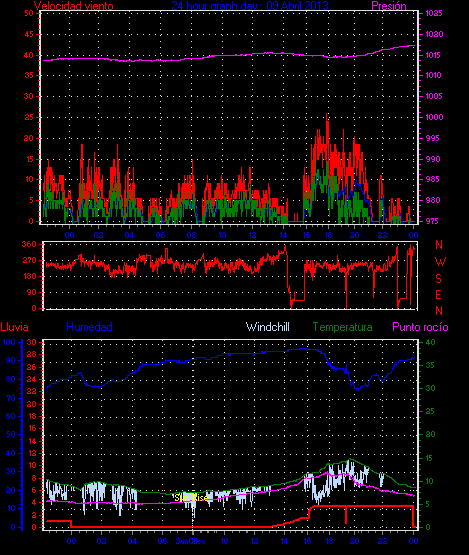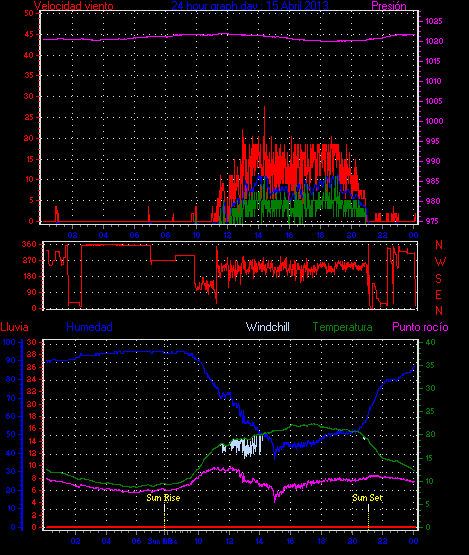 Maxima viento = 27.8 kmh from 023°(NNE) en dia 28 a la hora 12:25