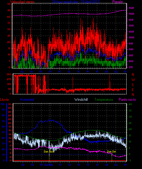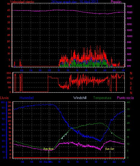 Maxima viento = 13.0 km/h en dia 30 a la hora 15:24