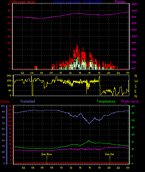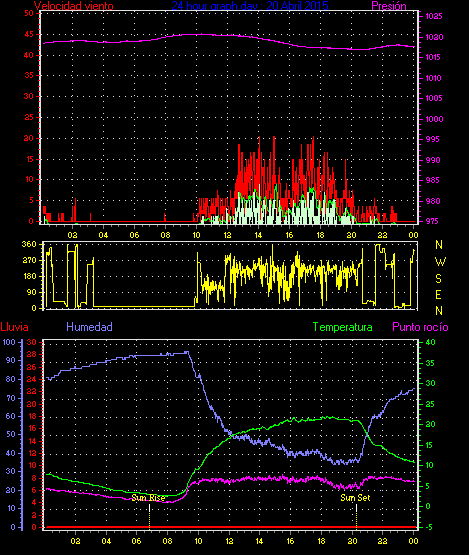 Maxima viento = 29.6 kmh from 248°(WSW) en dia 18 a la hora 15:26