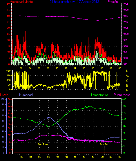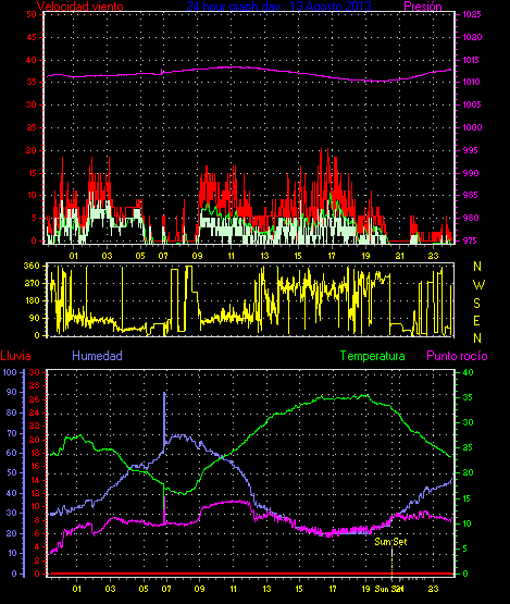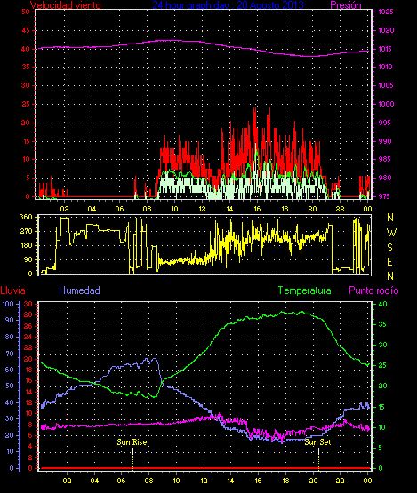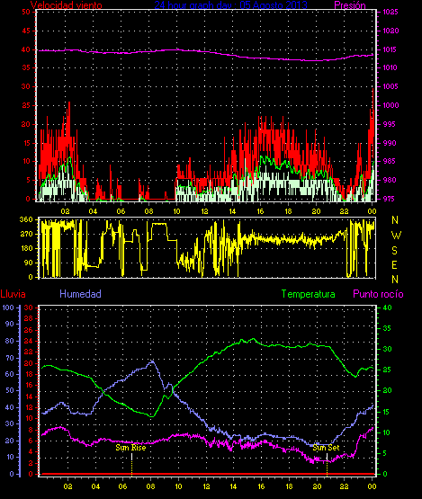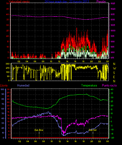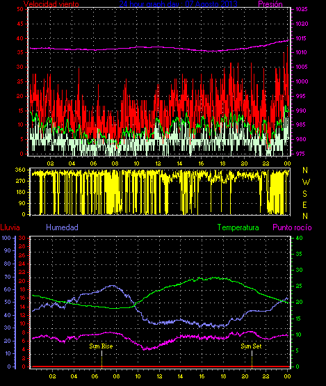 Maxima viento = 24.1 kmh from 338°(NNW) en dia 07 a la hora 23:41