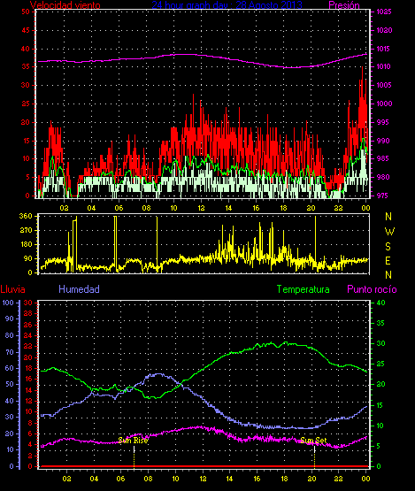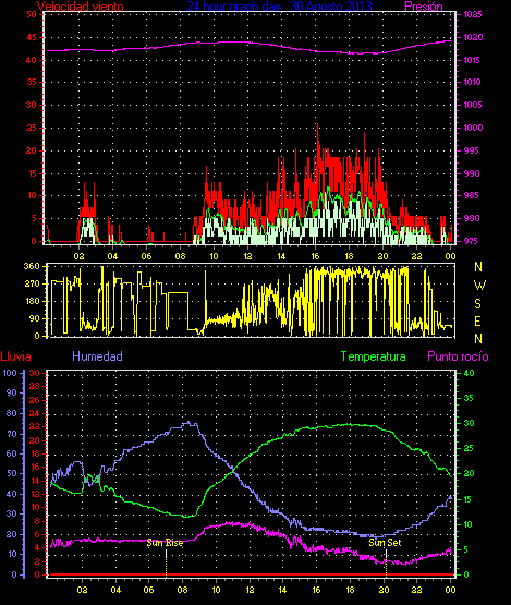 Maxima ráfaga viento= 25.9 km/h de 338°(NNW) en dia 30 a la hora 16:08
