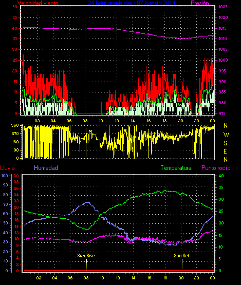 Barómetro maxima = 1014.1 hPa en dia 30 a la hora 12:07