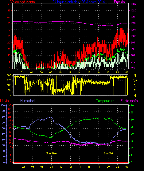 Maxima viento = 25.9 kmh from 338°(NNW) en dia 02 a la hora 00:58