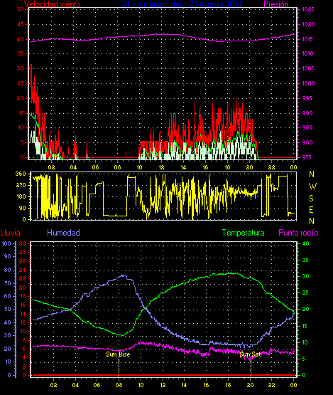 Maxima ráfaga viento= 24.1 km/h de 338°(NNW) en dia 29 a la hora 03:53