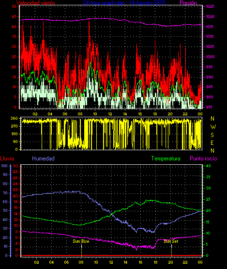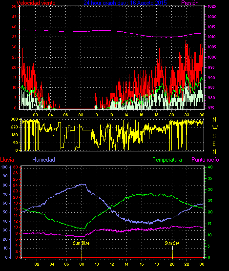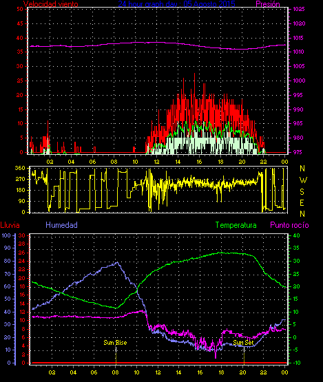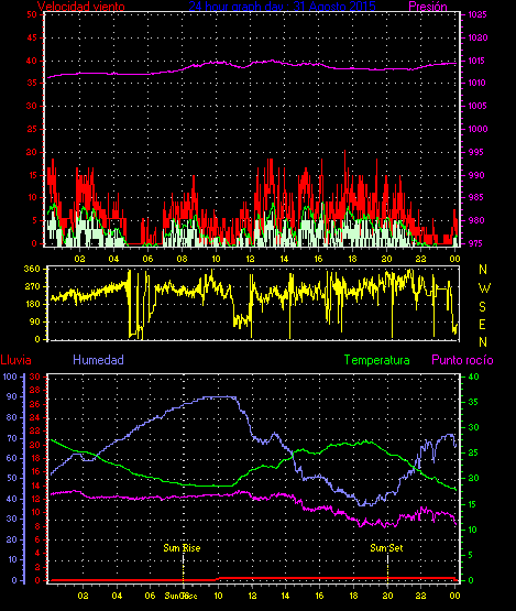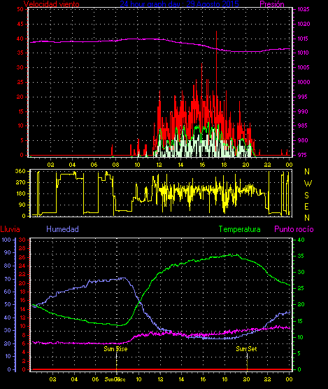 Maxima viento = 27.8 kmh from 248°(WSW) en dia 23 a la hora 21:20
