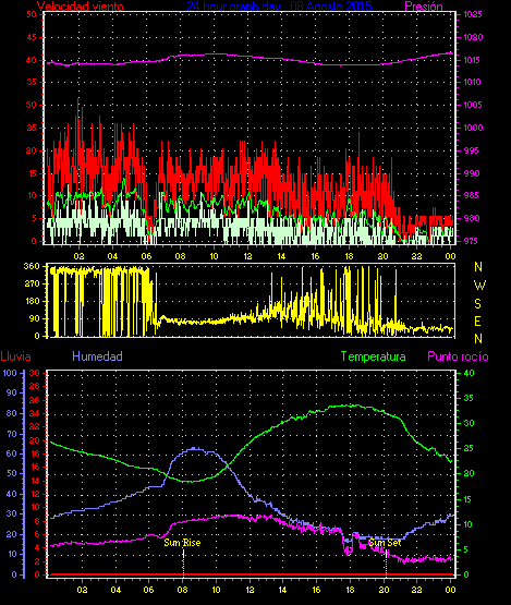 Maxima ráfaga viento= 33.3 km/h de 338°(NNW) en dia 03 a la hora 22:42