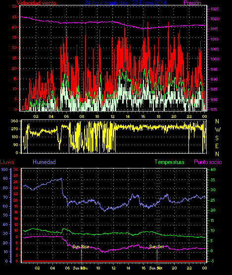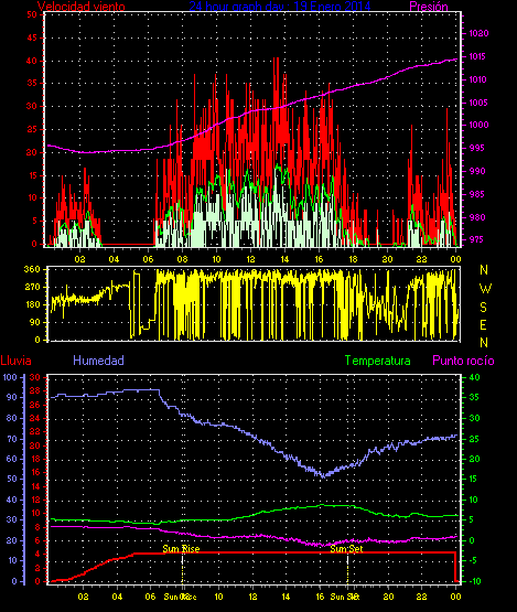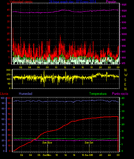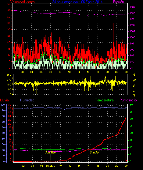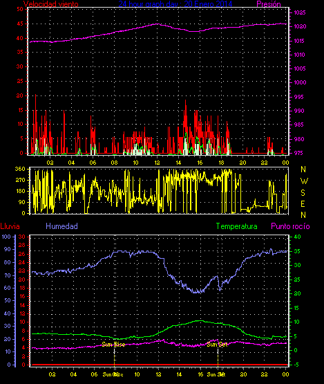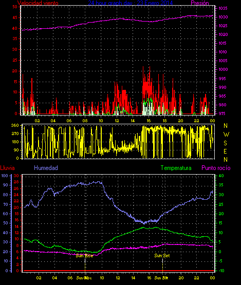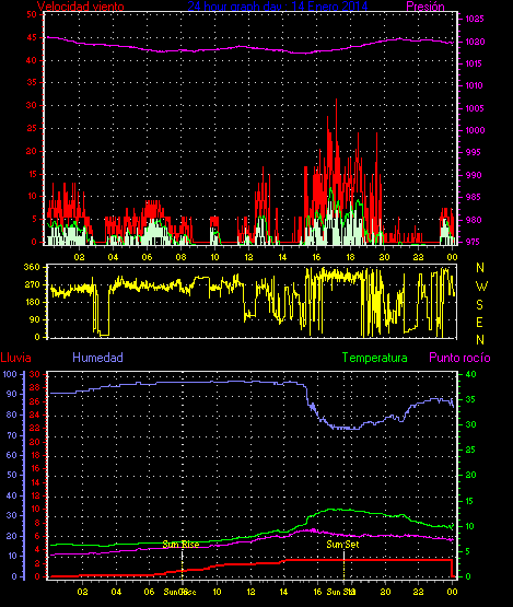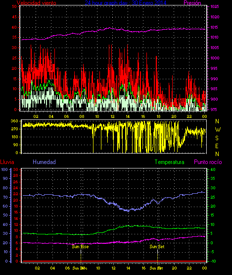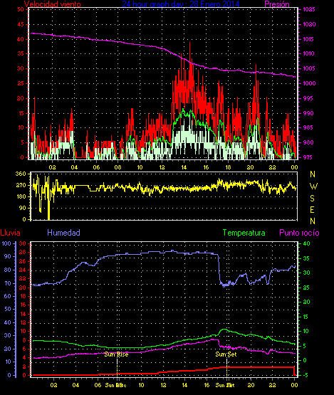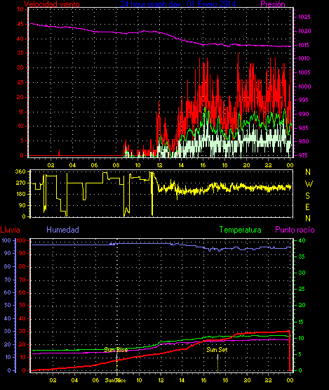 Barómetro minima = 1014.2 hPa en dia 01 a la hora 23:05