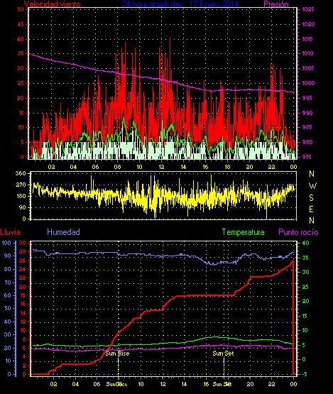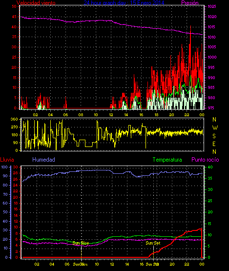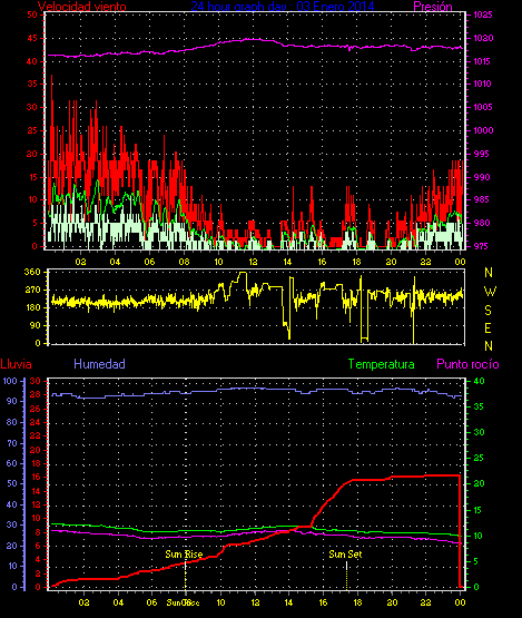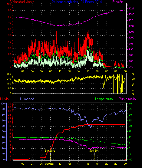Maxima viento = 38.9 kmh from 293°(WNW) en dia 04 a la hora 15:51
