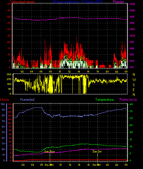 Maxima ráfaga viento= 24.1 km/h de 293°(WNW) en dia 31 a la hora 13:34
