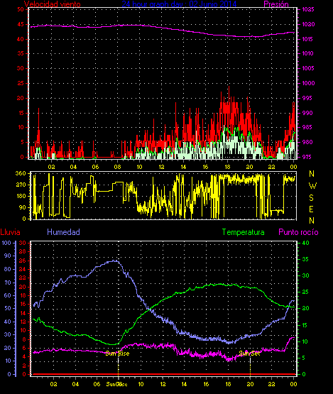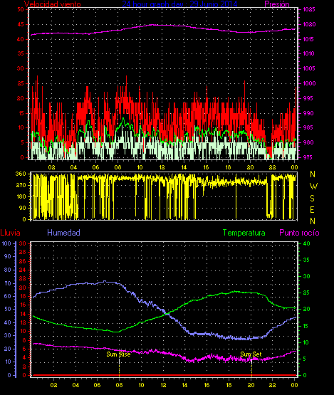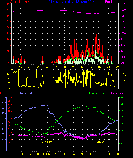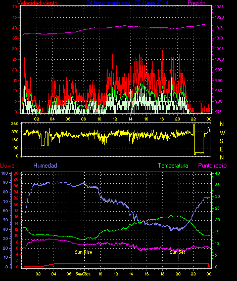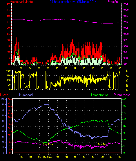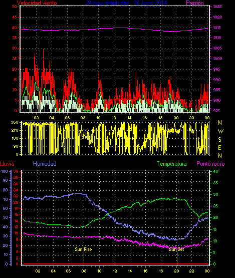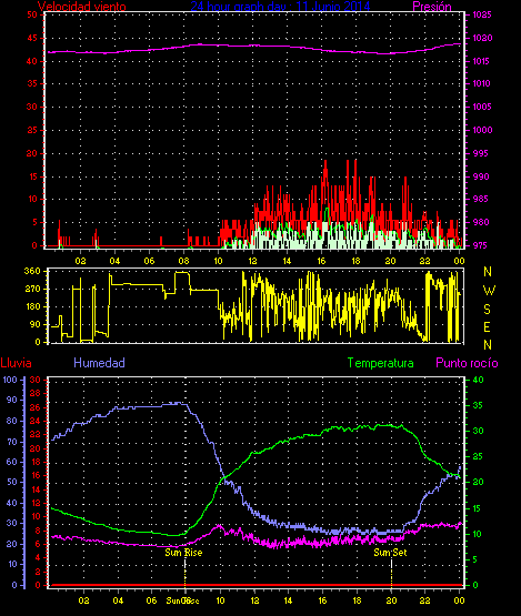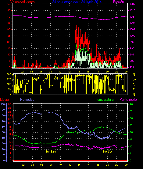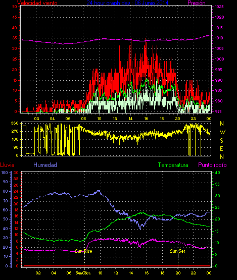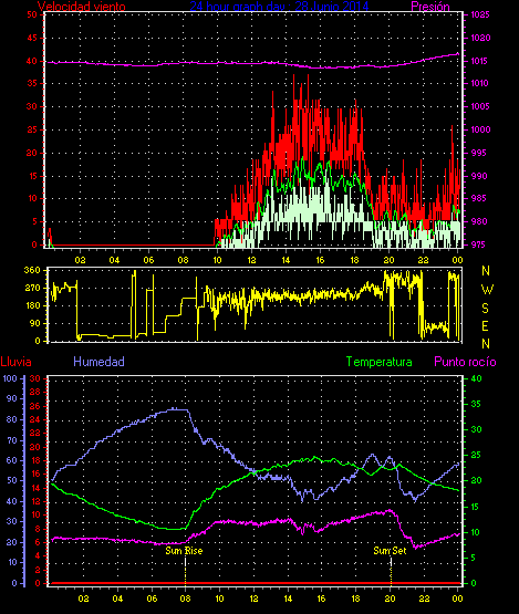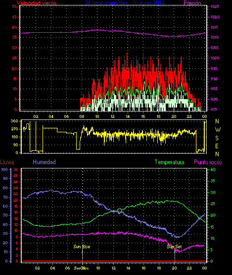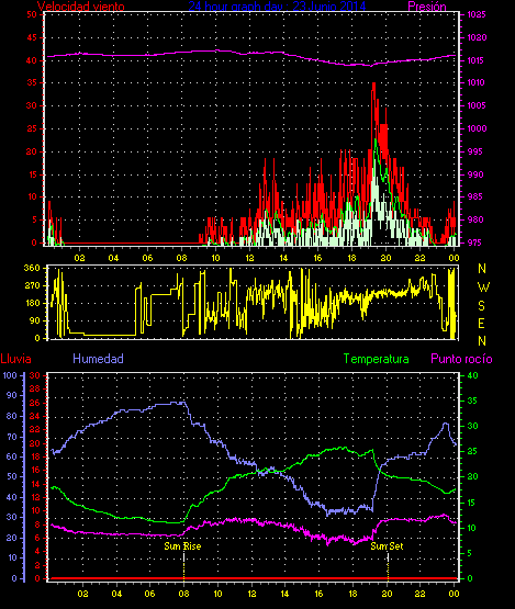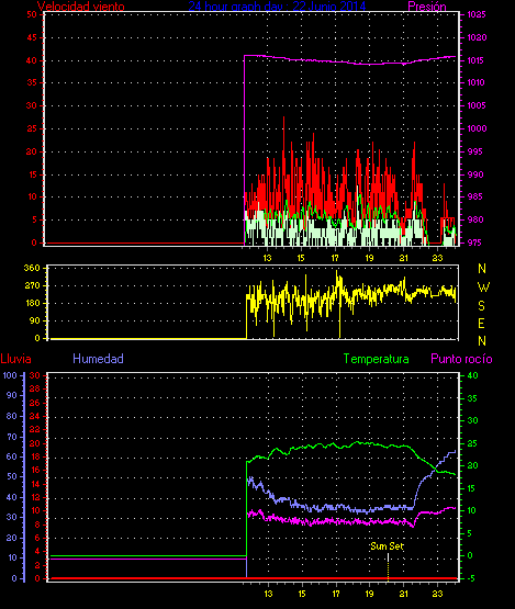 Maxima viento = 27.8 kmh from 225°( SW) en dia 23 a la hora 19:19