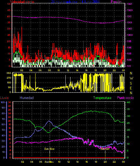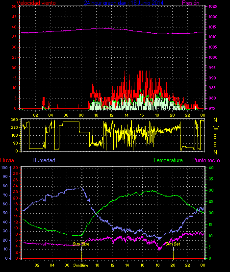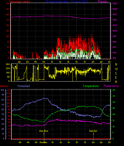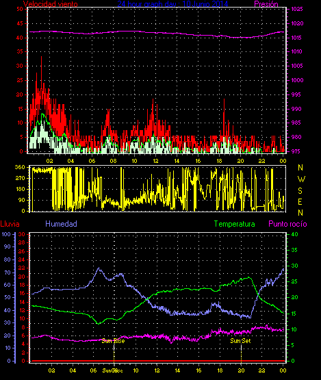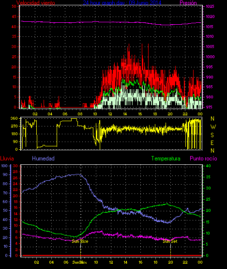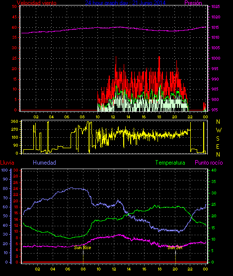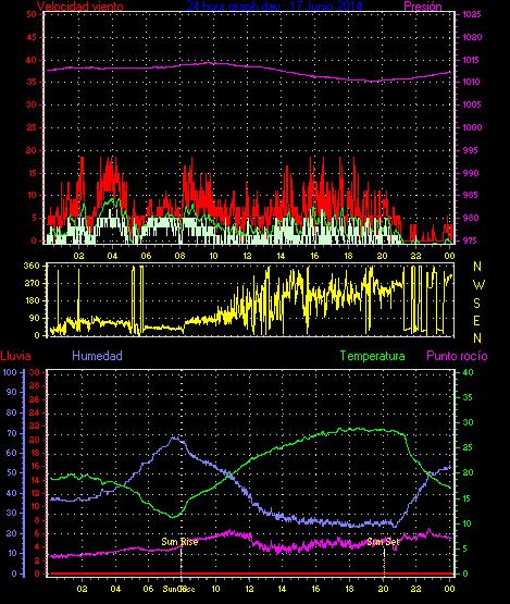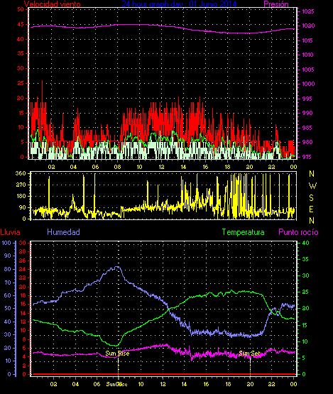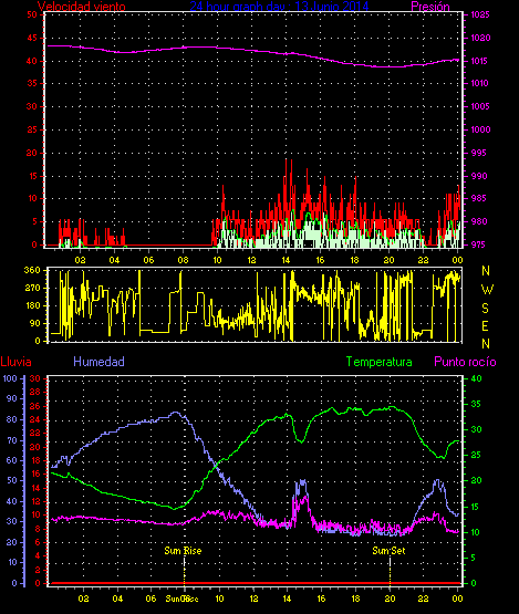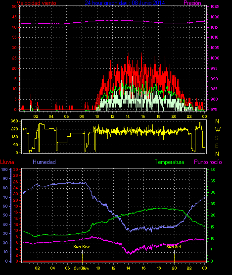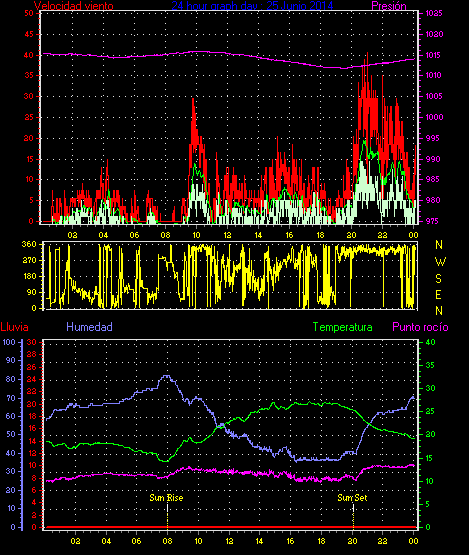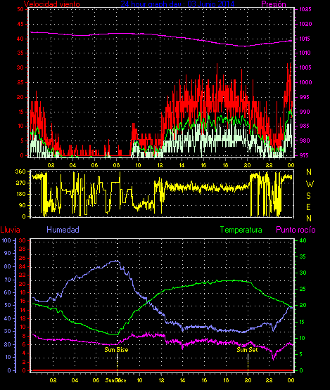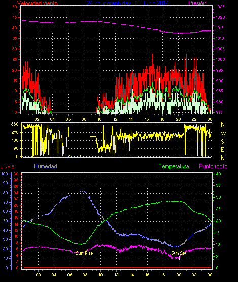 Maxima viento = 27.8 kmh from 225°( SW) en dia 23 a la hora 19:19