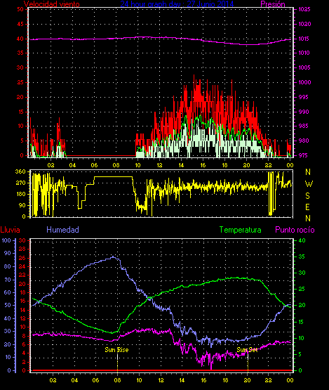 Maxima ráfaga viento= 27.8 km/h de 270°( W ) en dia 27 a la hora 15:10