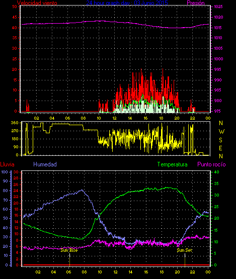 Barómetro minima = 1015.1 hPa en dia 02 a la hora 19:46