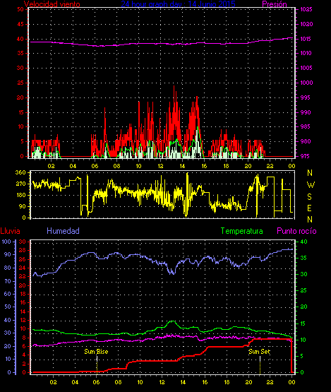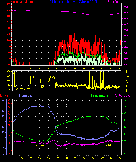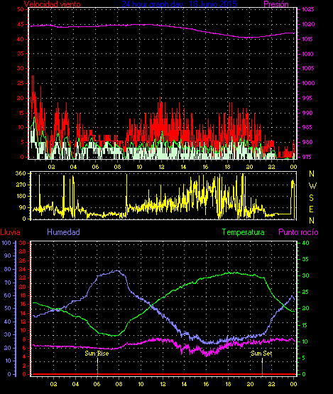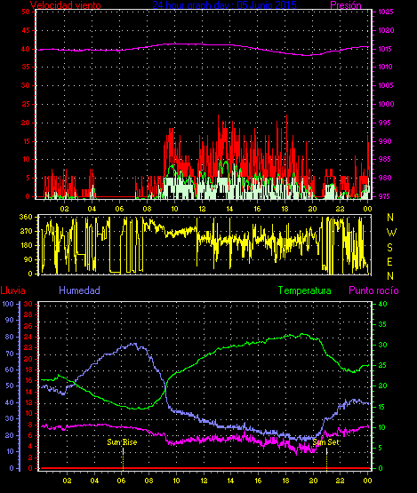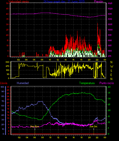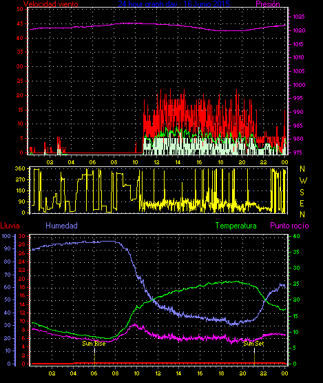 Maxima viento = 25.9 kmh from 270°( W ) en dia 10 a la hora 16:18