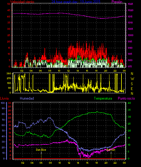 Barómetro minima = 1013.1 hPa en dia 04 a la hora 20:35