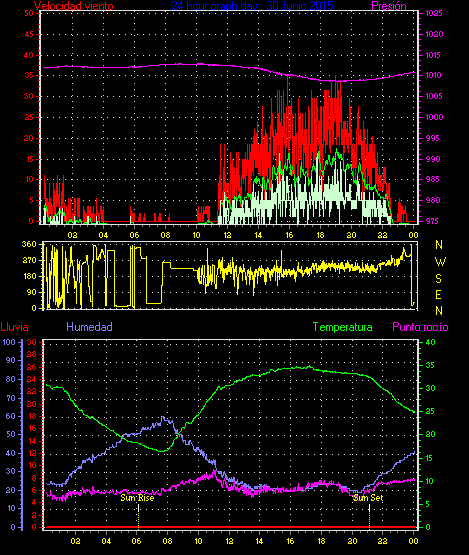 Maxima viento = 24.1 km/h en dia 30 a la hora 18:57