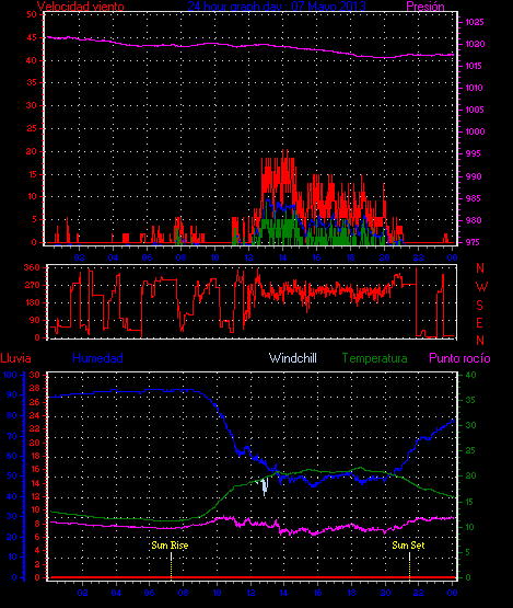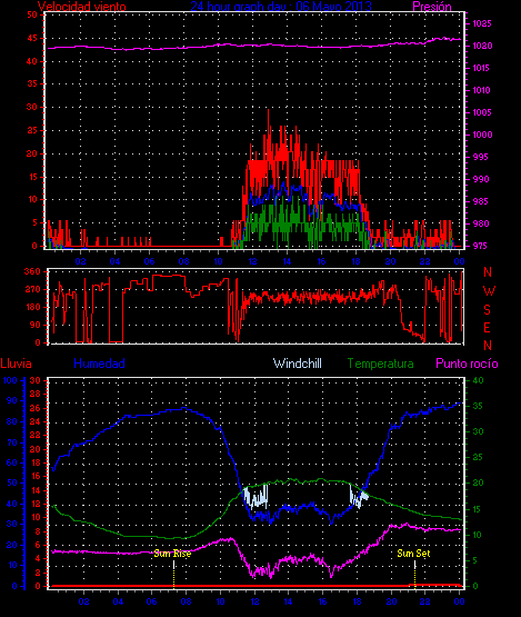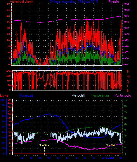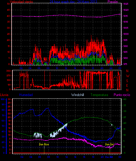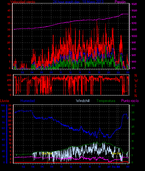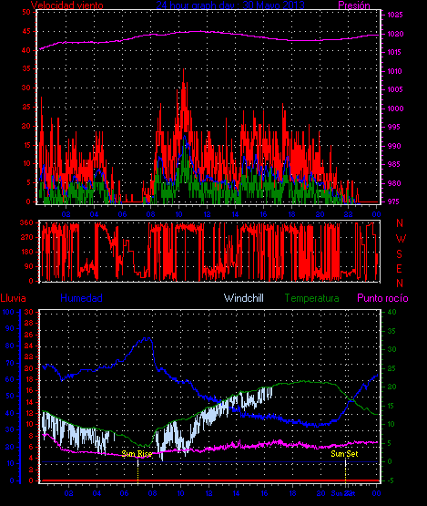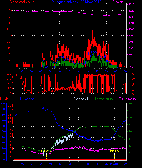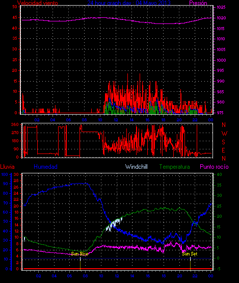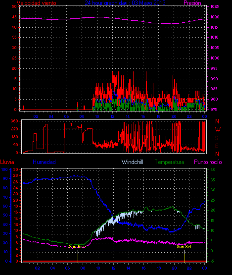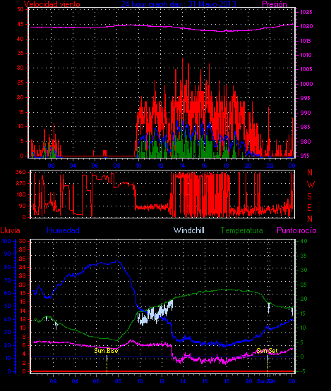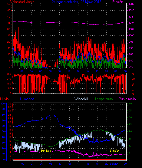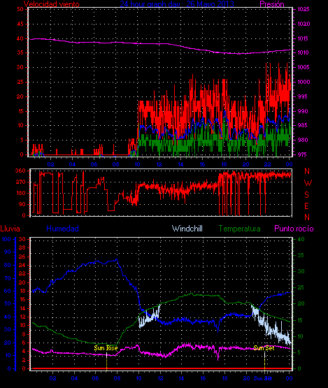 Maxima viento = 25.9 kmh from 315°( NW) en dia 29 a la hora 00:52