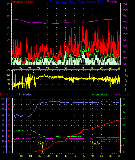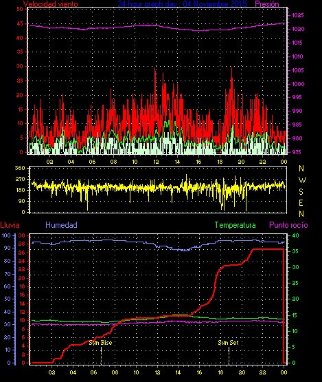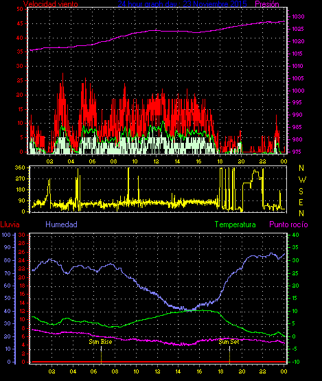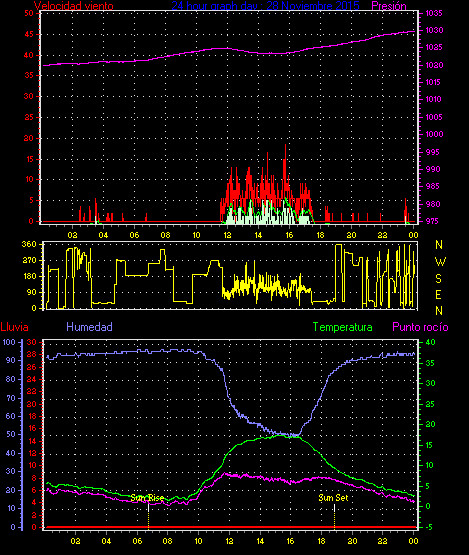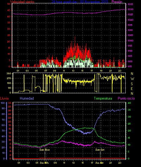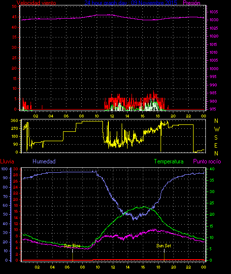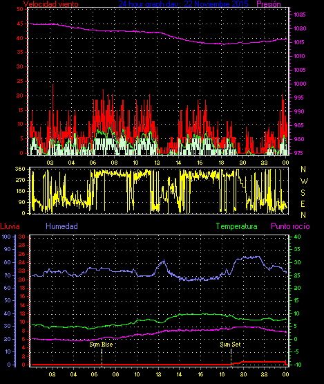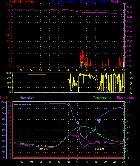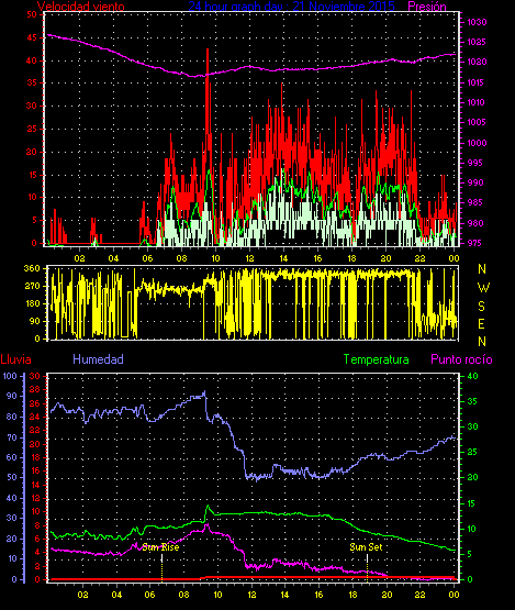Maxima viento = 24.1 kmh from 338°(NNW) en dia 21 a la hora 13:52