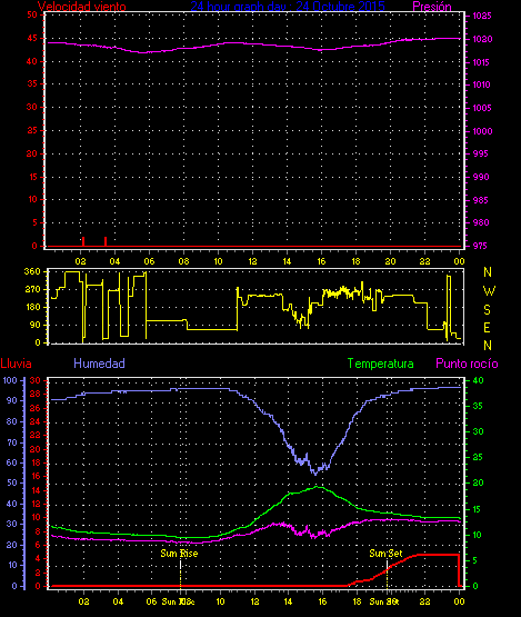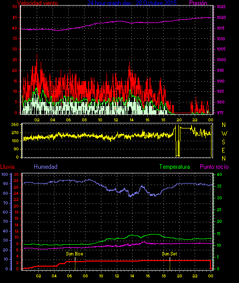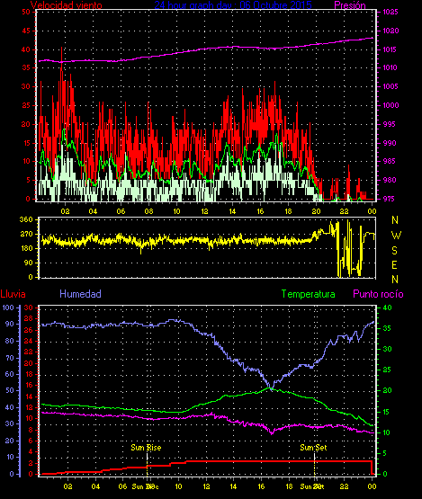Maxima viento = 29.6 kmh from 225°( SW) en dia 05 a la hora 05:03
