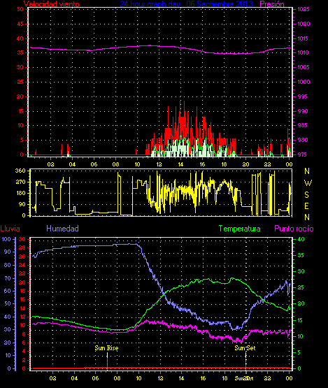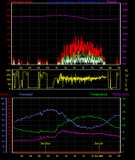 Maxima viento = 25.9 kmh from 225°( SW) en dia 28 a la hora 15:17