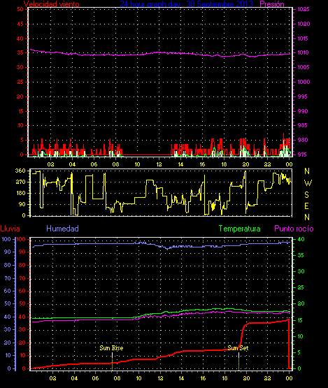 Maxima ráfaga viento= 7.4 km/h de 315°( NW) en dia 30 a la hora 23:28
